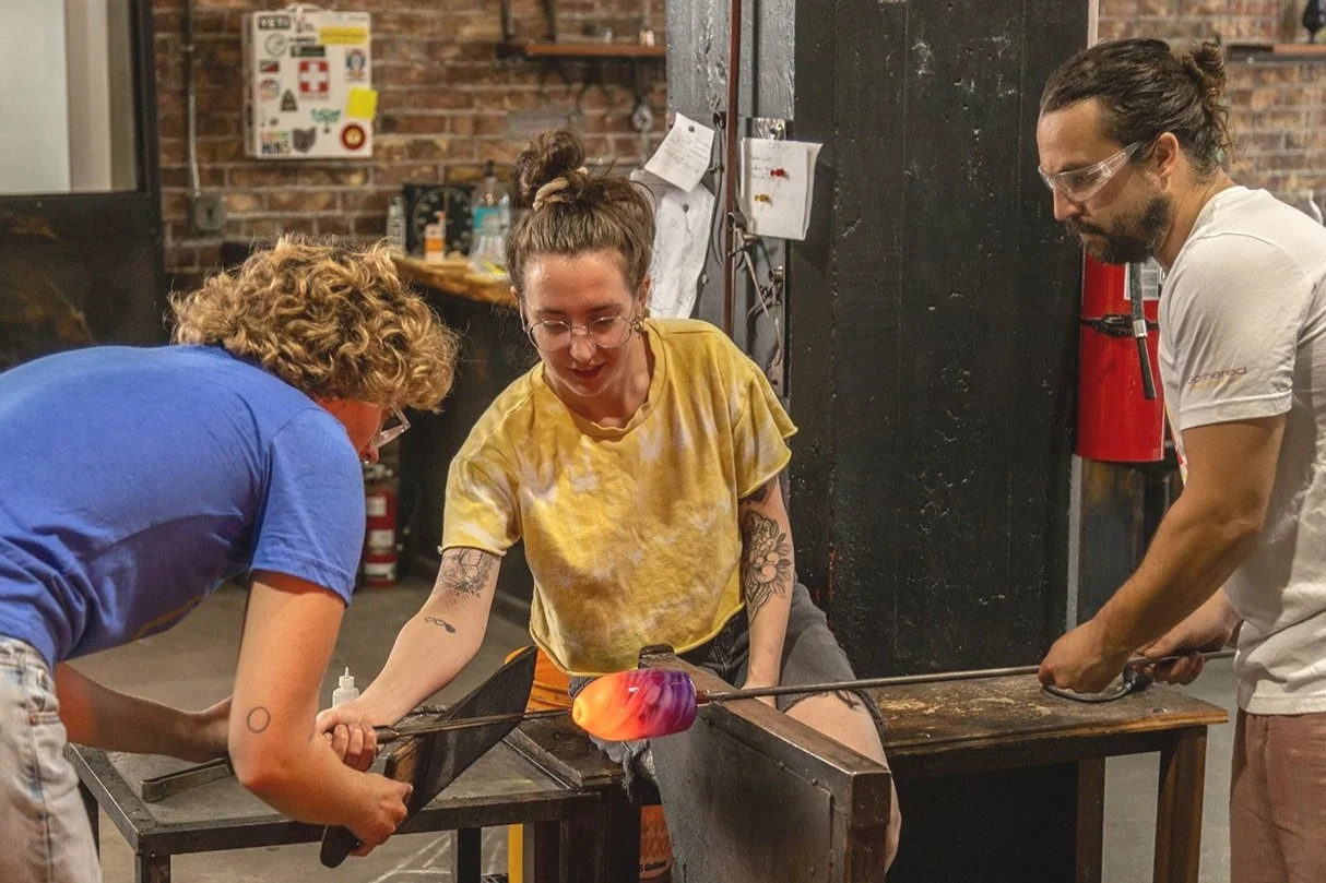 Date Nights are an intimate experience for two. Our glassblowers will demonstrate a piece for you to keep: a bowl, vase, or pitcher. Next each participant makes a workshop item of their own.The Date Night usually lasts about 90 minutes, and your pieces will be ready to be picked up 48 hours later (subject to gallery hours).